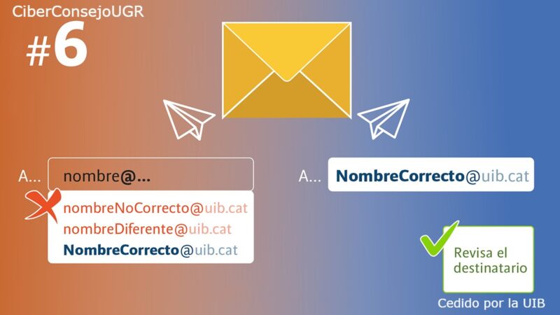 Antes de enviar un correo electrónico, es muy importante revisar el destinatario al que va dirigido. La función de autocompletar puede sugerirnos una dirección de correo similar pero que no es la del destinatario al que queremos enviar el mensaje. Si no prestamos atención podemos acabar enviando el correo a un destinatario no deseado.